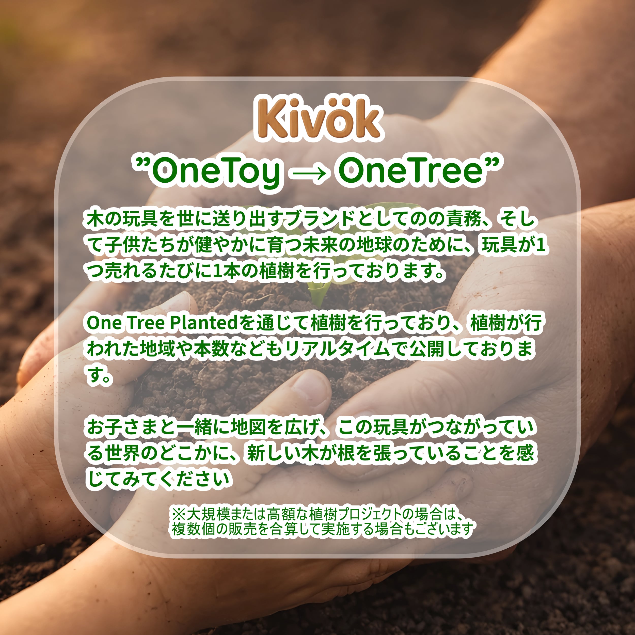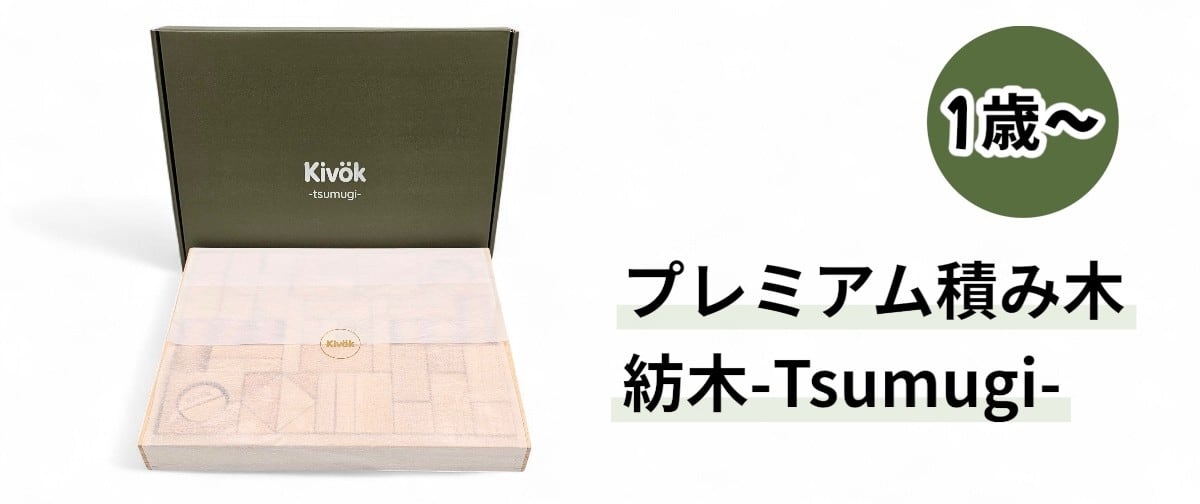 「知育」を超えて「共育」へ。 紡木 tsumugi は、一人で黙々と遊ぶのではなく、親子で語り合い、笑い合いながら一緒に育つ積み木です。 この名前には、親子の触れ合いを通じて、かけがえのない思い出を紡いでいってほしいという願いを込めました。 --- ◆ Kivökの揺るぎない想い 子どもはあっという間に成長し、やがて親の手を離れていきます。 だからこそ、いま一緒に笑い、遊ぶこの瞬間を大切にしてほしい。 そんな想いから、私たちは安全と品質に一切妥協しませんでした。 --- ◆ 素材へのこだわり ○ ヨーロピアンビーチ(ブナ無垢材) 木目が美しく耐久性に優れたブナ材を厳選。温もりある質感としっかりとした重みは、本物の木ならではの魅力です。 ○ 天然由来100%のカルナウバワックス仕上げ 天然ワックスの女王と呼ばれ、高級弦楽器の仕上げや食品、医薬品のカプセルなどに使われるカルナウバワックス。お子さまが舐めても安心なだけでなく、積み木を汚れや乾燥から守ります。 --- ◆ 積み木がもたらす、親子の特別な時間 紡木 tsumugi は、単なるおもちゃではありません。 ○ 58ピースの豊かな遊び 基本の形からユニークな形まで。年齢に合わせて遊び方が広がり、お子さまの成長とともに長く楽しむことができます。 ○ 子供と大人、それぞれの遊び方ガイド 子供用には「遊び方ガイド」を、大人用には「年齢別の遊び方」を詳しく解説。親も遊びのヒントを得られるから、自然と会話が弾みます。 ○ 特別な木箱付き シンプルで高級感ある木箱は、お片付けを学ぶきっかけに。遊びの時間だけでなく、大切にしまう時間も親子にとってかけがえのない思い出となります。 --- ◆ 紡木 tsumugi が育む4つの力 1. 指先と五感の発達(0〜3歳) 積む・つまむ・そっと置く。木の重さ、木目、温度の違い。幼少期に活発な指先の刺激は、思考や探究の土台づくりにつながります。 2. 因果関係の理解(1〜2歳) 積む → 倒れる → やり直す。「なぜ?」を自分で考える経験が、失敗を前向きに捉える力を育みます。 3. 空間認知の発達(1〜4歳) 高さ・距離・向き・バランス。試行錯誤を繰り返す中で、図形感覚や立体的な思考の基礎が養われます。 4. 実行機能の芽生え(3〜6歳) 選ぶ → 並べる → 積む → 片付ける。計画し、調整し、やり抜く力。日常生活にもつながる大切な力です。 --- ◆ 商品詳細 ・内容: 58ピース(基本形〜ユニークな形まで多彩な構成) ・素材: ブナ無垢材(ヨーロピアンビーチ) ・仕上げ: カルナウバワックス ・対象年齢: 12ヶ月〜 ・付属品: 積み木58ピース、子供用説明書、大人用説明書、保証書、特別な木箱 ・生産国: 中国 ・保証: 1年間(初期不良対応) ・ブランド: Kivok --- ◆ ギフトにも最適 特別な木箱入りで、誕生日プレゼントや出産祝いにも喜ばれます。 --- ◆ Kivokからのメッセージ 紡木 tsumugi は、親子の会話を育み、かけがえのない時間を宝物に変える積み木です。 玩具ではなく、その先にある親子の時間をお届けします。 ギフトとしても、ご家庭用としても、その価値はきっと価格以上に感じていただけるはずです。 ## 【Q&A(よくある質問)】 Q 何歳から遊べますか? A 12ヶ月頃からご利用いただけます。1歳のうちは積み上げが難しいため、まずは大きめのピース1〜2個から始めるのがおすすめです。成長に合わせて長くお楽しみいただけます。 Q 仕上げは安全ですか?舐めても大丈夫ですか? A 天然由来100%のカルナウバワックスを使用しており、お子さまが口に入れても問題ございません。 Q お手入れ方法を教えてください A 柔らかい布で乾拭きしてください。水洗いや洗剤の使用は、木材の劣化やワックスの剥がれの原因となるため避けてください。汚れがひどい場合は、固く絞った布で拭き取り、すぐに乾いた布で水気を取ってください。 Q 写真と色や木目が違います A 天然木のため、ロットや木の状態により色味や木目に個体差が生じます。これは不良ではなく、木の個性です。世界に一つだけの表情として、ぜひお楽しみください。 Q ピースが欠けていました / 割れていました A 配送中にピース同士がぶつかり、欠けや割れが生じる場合がございます。1年間の保証期間内であれば、お問い合わせフォームよりご連絡ください。速やかに対応いたします。 Q ギフト包装はできますか? A 商品は特別な木箱に入れてお届けしますので、そのままギフトとしてもお使いいただけます。